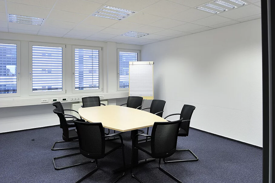 Ein grosszügiger Empfangsbereich führt den Besucher ins Erdgeschoss mit seinen zwei grossen Besprechungsräumen für Meetings und Beratungsgespräche. Die Sanitärräume konnten geschickt in den Treppenhausbereich integriert werden. Die Aufteilung der oberen vier Geschosse ist ähnlich dem benachbarten PHOENIX-Gebäude.