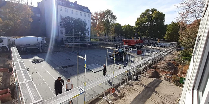 Wie auch in anderen Stadtteilen Berlins stieg in Pankow in den letzten Jahren der Bedarf an Bildungsplätzen stetig. Nebenbei wurde auch der Ruf nach zeitgemäßen, modernen Schulen lauter, der Sanierungsstau kommt für die Städte und Kommunen erschwerend hinzu. Das Bezirksamt Pankow hat sich deshalb entschieden: ein Neubau muss schnellstmöglich her – und ALHO wird ihn umsetzen. Wir nehmen Sie in unserem Bautagbuch mit auf die Reise!