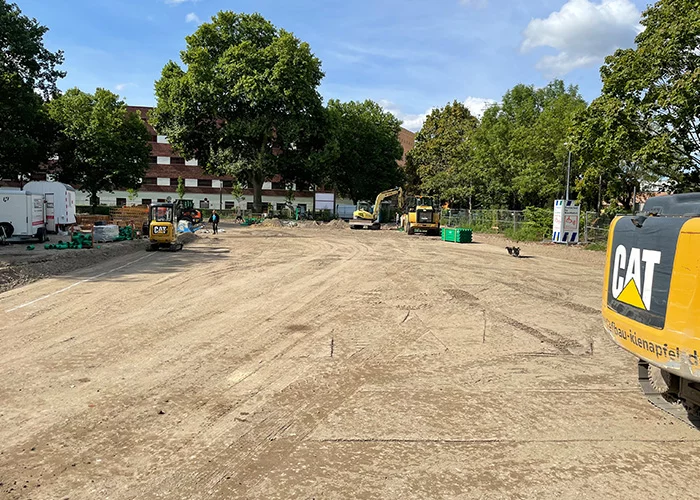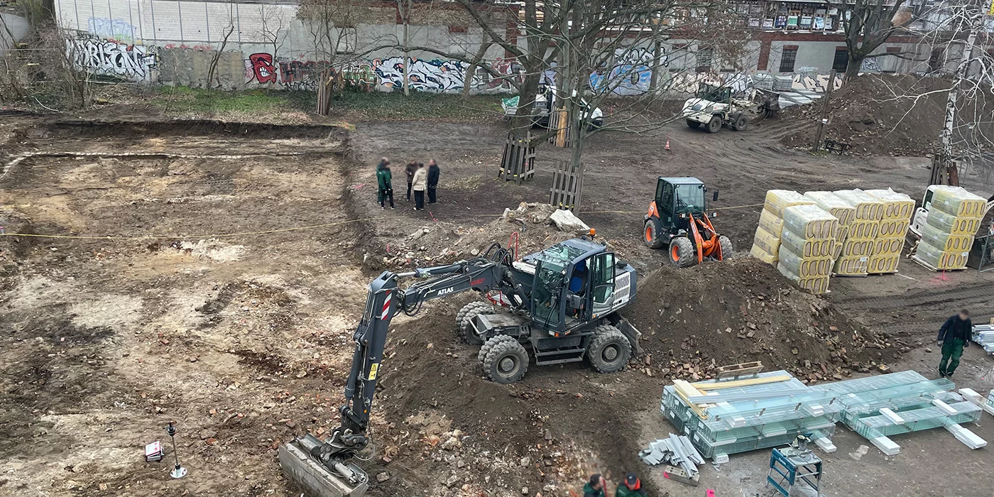Nachdem zum Ende letzten Jahres das Richtfest gefeiert wurde, konnten wir in den ersten beiden Monaten in 2023 den Innenausbau weit voranbringen. Der Estrich ist fertiggestellt, in den Treppenhäusern wurde moderne Profilglasfassade verbaut und auch die restlichen Fassadenarbeiten sind in vollem Gange. Parallel beginnen nun auch die Arbeiten an den Aussenanlagen.