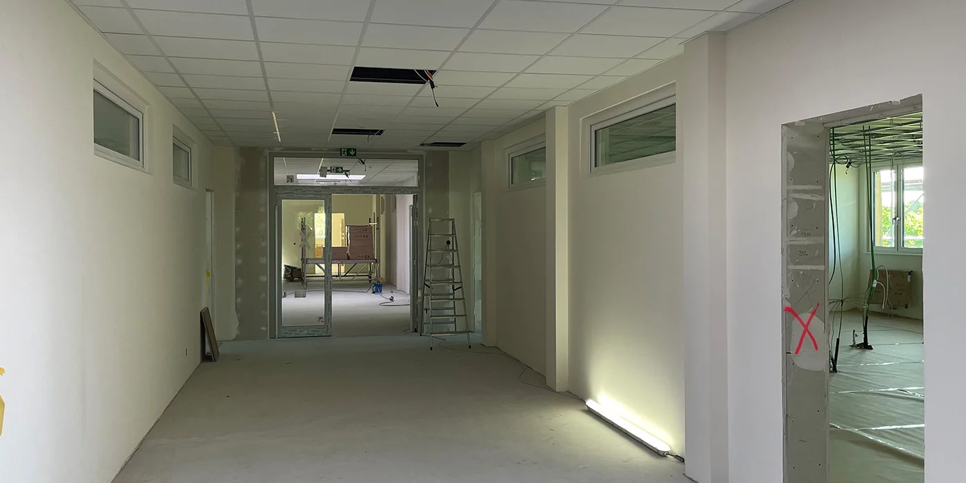 Neues Update von der Baustelle: die Arbeiten zum Innenausbau sind weiter fortgeschritten und das Projekt nähert sich langsam der Zielgeraden. Die zweifarbige Fassade ist mittlerweile ebenfalls weitestgehend angebracht und die Übergabe des Projektes rückt näher. Planmäßig findet die Schlüsselübergabe Anfang August statt.