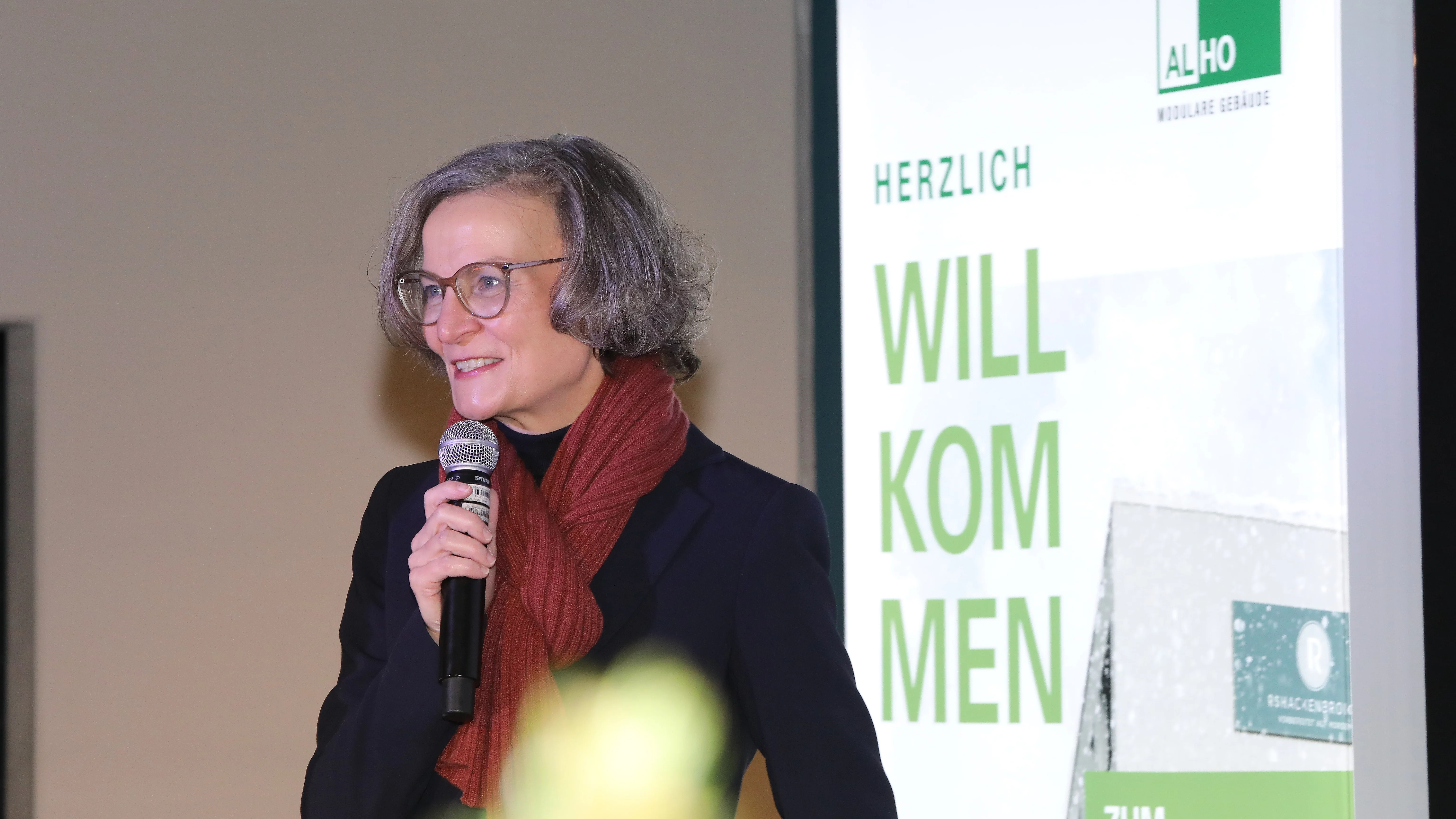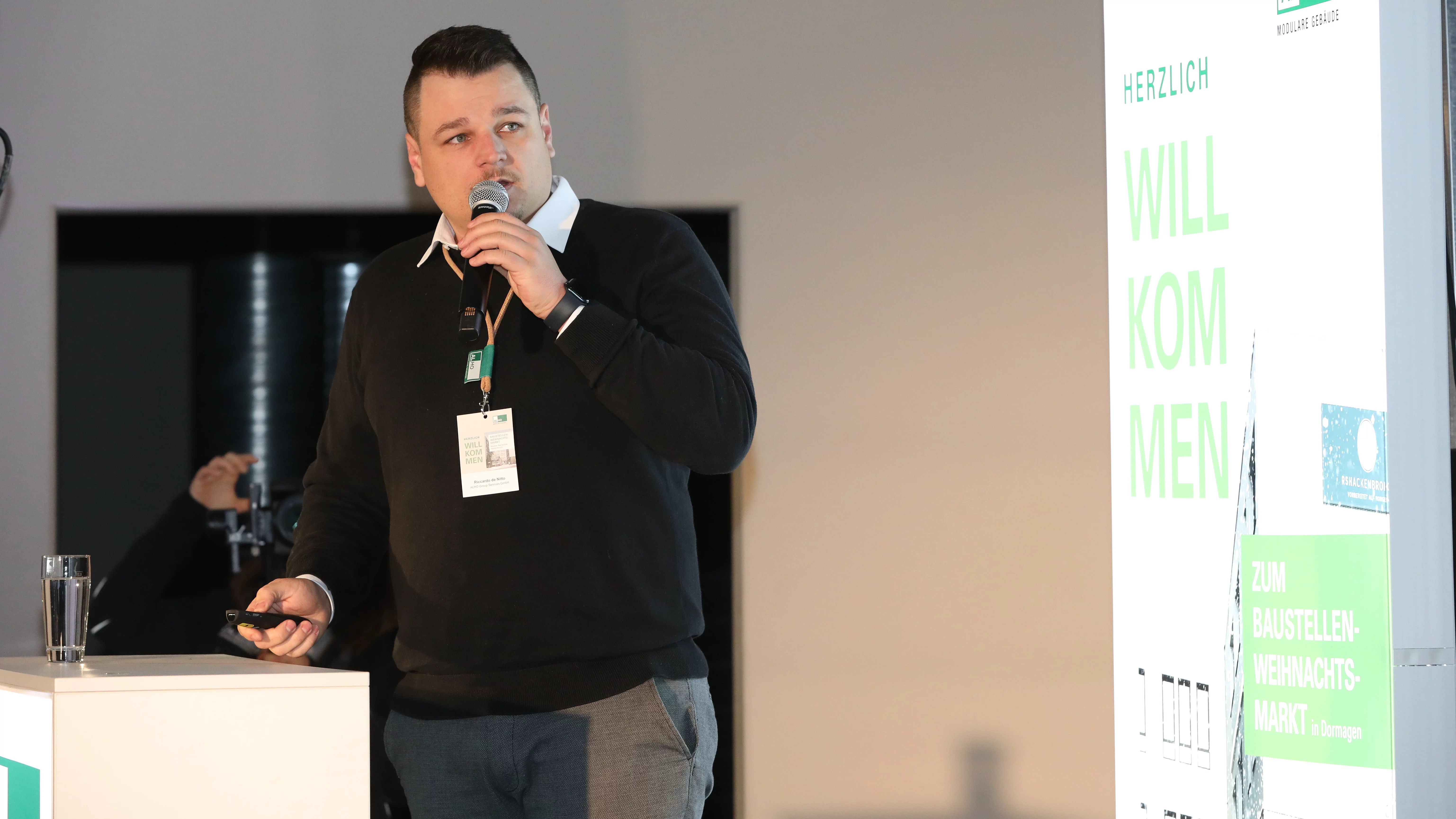 Besonders beeindruckt zeigten sich die Besucher vom Vortrag von Riccardo de Nitto, Experte für Nachhaltigkeit und Energieeffizienz bei der ALHO Group Services GmbH. Er erklärte die Besonderheiten der ALHO Holz-Hybridbauweise, den Einsatz von Green Steel und die angestrebte DGNB-Gold-Zertifizierung.