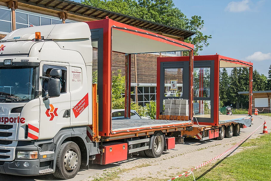 Auf LKWs wurden die Container von der bauma in die nächstgelegene FAGSI-Niederlassung München/Bergkirchen transportiert. Dort erarbeitete die FAGSI-Planungsabteilung einen Entwurf für die Wiederverwertung der Container. Nach Freigabe durch den Bauherrn erfolgten der Umbau und die Aufbereitung der Container im Werk und schließlich die Montage vor Ort in Starnberg.