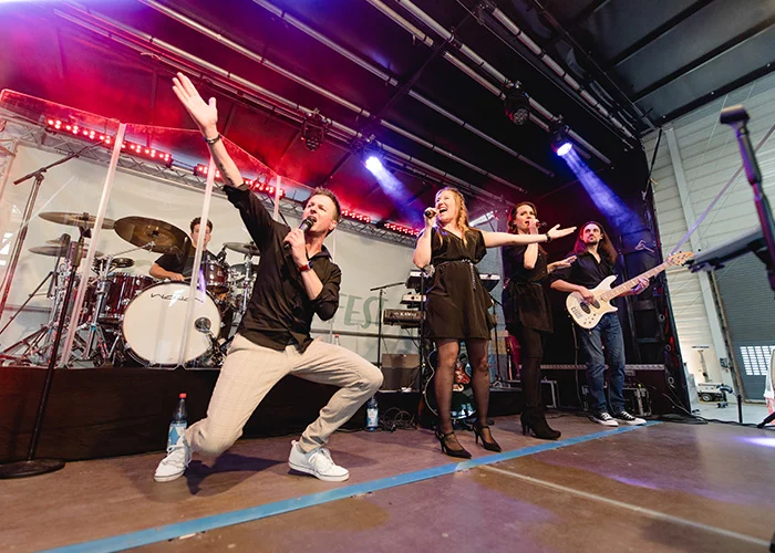 Danach mischte sich die Inhaberfamilie unter ihre Mitarbeitende und die Band Street-Life übernahm die Bühne. Sie begleiteten die Veranstaltung mit Covern berühmter Pop- und Rocksongs und sorgten für eine ausgelassene Stimmung.