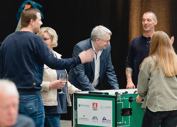 Bis in die Abendstunden wurde gefeiert. Neben guten Gesprächen lieferten sich einige Kollegen Tischkicker-Turniere oder maßen sich beim Dosenwerfen, Torwandschießen oder Nageln. Um den gemeinsamen Tag in Erinnerung zu behalten, stand eine Fotobox zur Verfügung, in der der ein oder andere Schnappschuss entstanden ist.